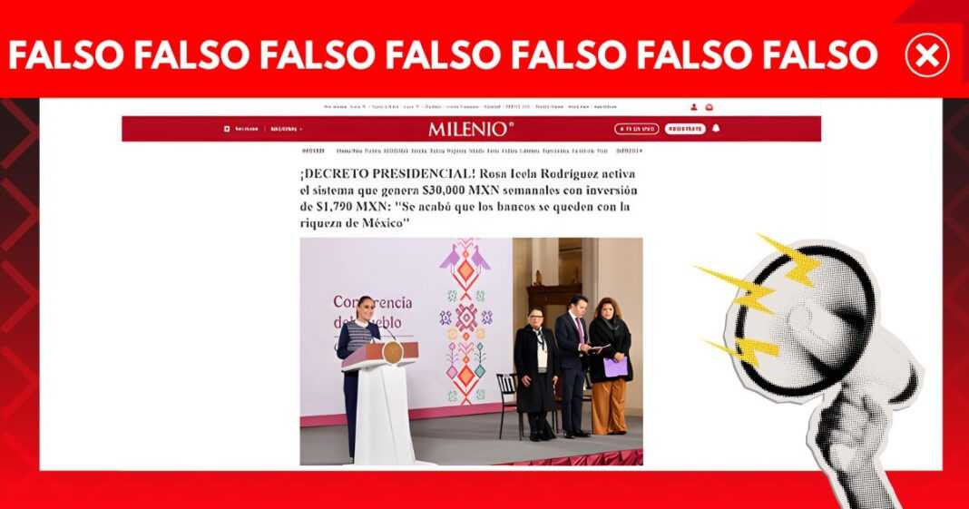 Una página fraudulenta que se hace pasar por el sitio web del medio Milenio ofrece ganancias falsas de hasta 30 mil pesos a través de un supuesto programa del gobierno de México, vinculado supuestamente con grupos empresariales y la Comisión Nacional Bancaria y de Valores.