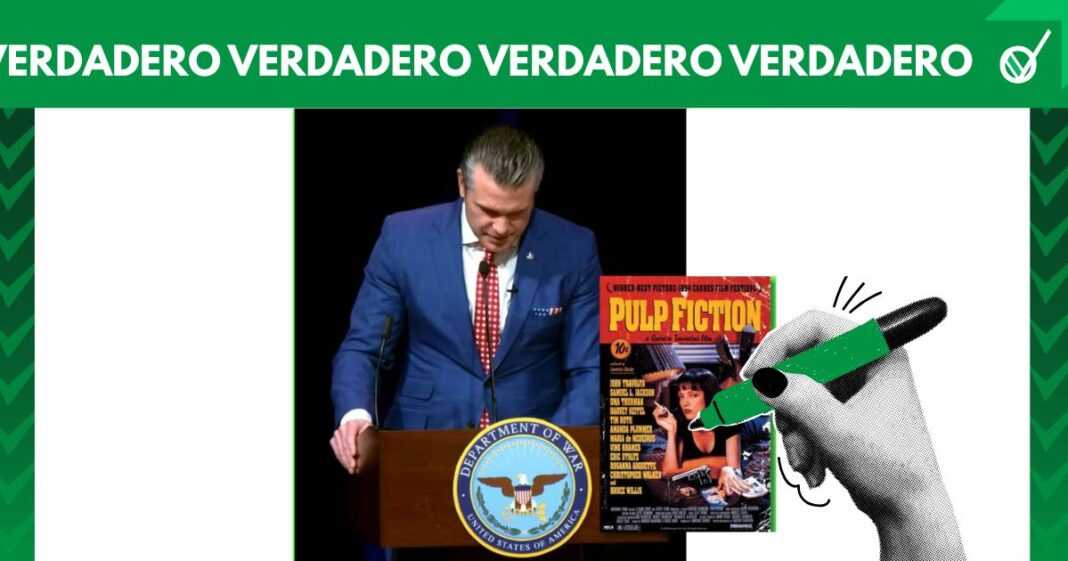 Algunos usuarios se preguntan en X si es cierto – que Pete Hegseth, secretario de Defensa, citó un fragmento del guión de la película de Pulp Fiction cuando pidió a la audiencia rezar con él en una oración, que él considera que “pretende reflejar” un versículo de la Biblia, como afirman algunas publicaciones en redes. Investigamos y encontramos que es verdadero que la oración que leyó tiene frases idénticas a la película.