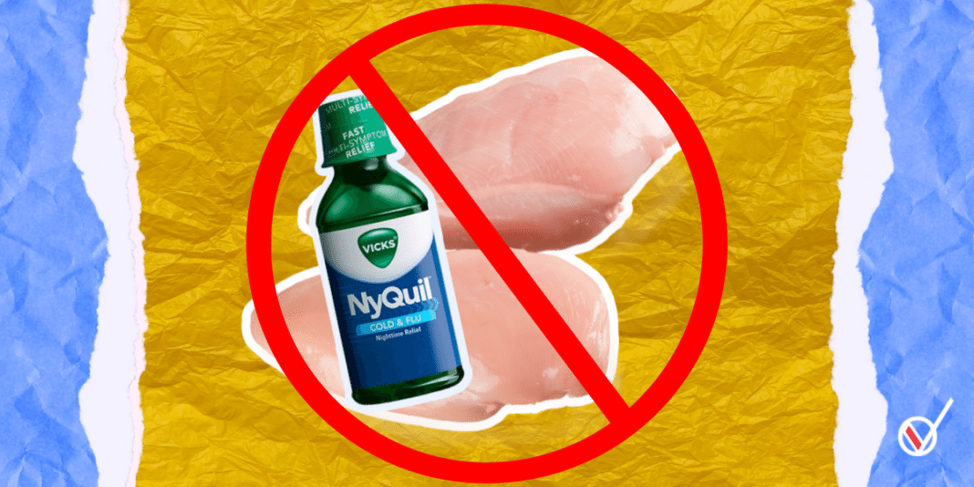 El trend de TikTok consiste en cocinar una pieza de pollo con el jarabe “NyQuil”, y si bien se popularizó en dicha red, existe registro de personas preparando esta “receta” desde 2017, en sitios como 4chan y Twitter.