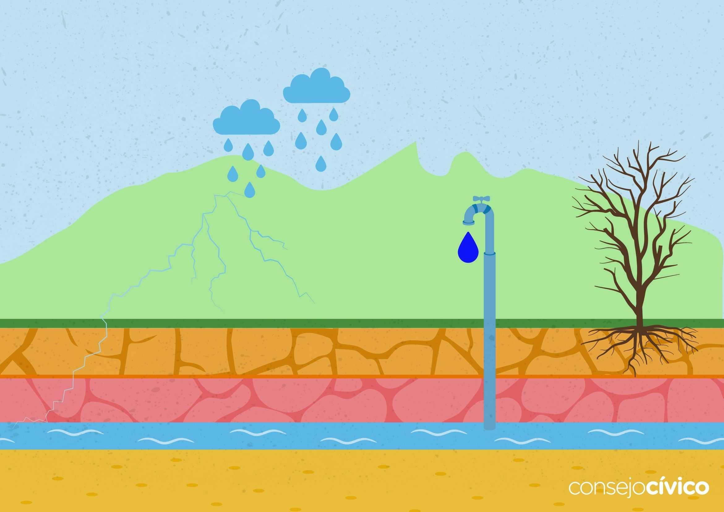 La recarga de las aguas subterráneas es el proceso por el cual el agua de lluvia penetra en el suelo y subsuelo a través de la superficie de la tierra, y quede retenida por él o alcanza un nivel acuífero incrementando el volumen acumulado anteriormente.