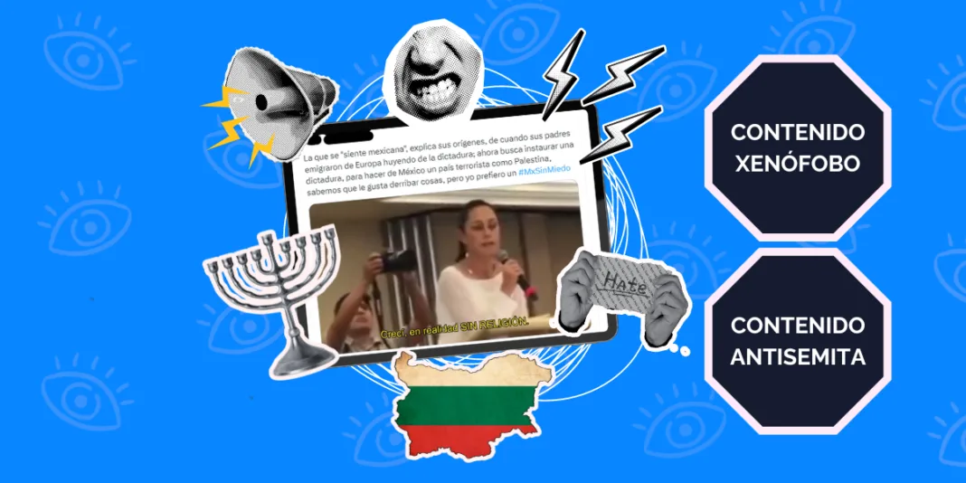 En redes sociales como X se ha replicado un video en el que la candidata a la presidencia por la coalición Sigamos Haciendo Historia, Claudia Sheinbaum Pardo habla sobre el origen judío de su familia, y por ello se le ha criticado con comentarios antisemitas, xenófobos y desinformantes sobre la identidad y nacionalidad de la morenista.