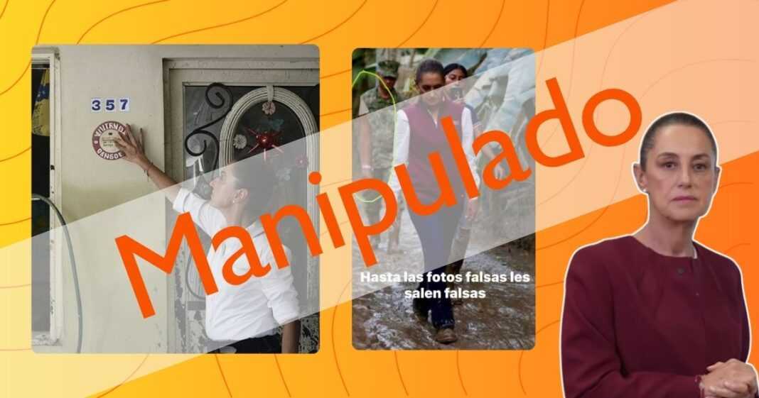 La presidenta de México, Claudia Sheinbaum sí compartió fotografías en las zonas afectadas por las recientes inundaciones en cinco estados. Sin embargo, publicaciones en redes sociales difunden versiones manipuladas de estas fotos con la afirmación de que la mandataria divulgó imágenes alteradas.
