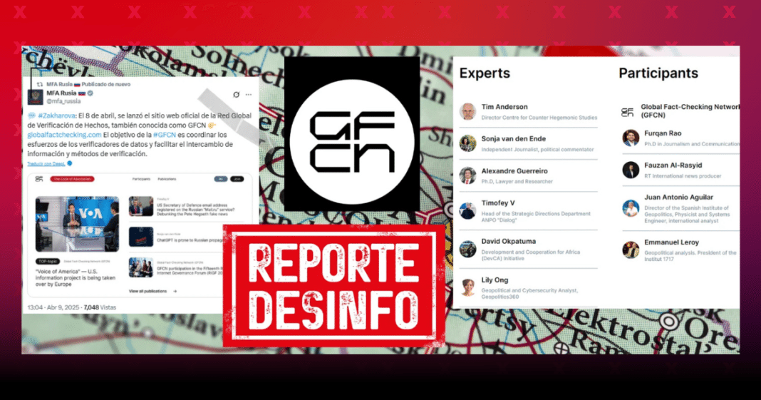 El 9 de abril de 2025 diversas instituciones del Gobierno ruso, como el Ministerio de Asuntos Exteriores y medios afiliados al Kremlin, como TASS, se han hecho eco del lanzamiento de la Global Fact-Checking Network (GFCN) una supuesta red de verificadores que, según anunciaron en noviembre de 2024 en un evento en Moscú, tiene como objetivo “reunir a periodistas de verificación que compartan sus ‘puntos de vista y valores’”, algo que entra directamente en conflicto con la metodología de los verificadores independientes.