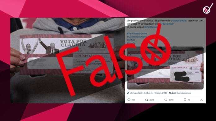 En redes sociales circula la imagen de sobres que reciben beneficiarios del programa Bienestar y cuyo frente tiene la leyenda "Vota por Claudia". Además incluye una fotografía...