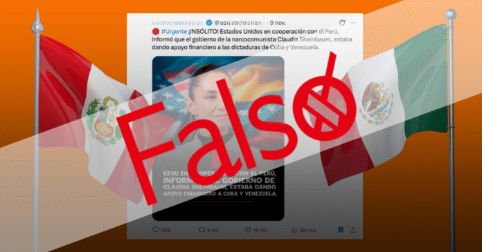 Circulan publicaciones falsas que aseguran que Claudia Sheinbaum financia a Cuba y Venezuela con base en un supuesto informe de inteligencia inexistente.