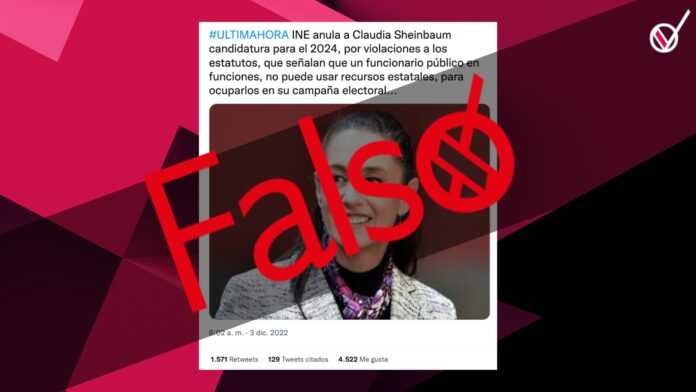 Circulan en redes sociales varias publicaciones afirmando que el Instituto Nacional Electoral (INE) anuló la candidatura de la Jefa de Gobierno de la Ciudad de México, Claudia...
