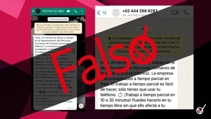 A través de nuestras redes sociales y canal de WhatsApp de Verificado, usuarios nos reportaron que recibieron sorpresivamente ofertas de trabajo de empresas como Amazon o Mercado...
