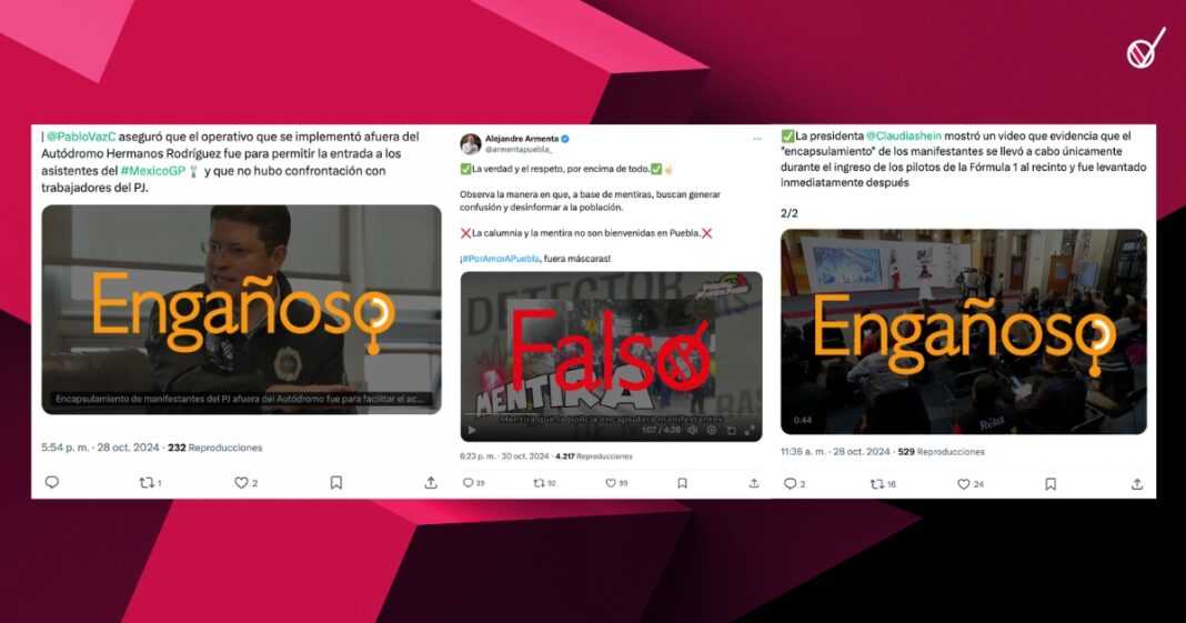 En el video que corresponde al ejercicio del «Detector de Mentiras Puebla» se explica que se presentaron manifestaciones en contra de la Reforma Judicial y una de ellas se dio en el Gran Premio México de la Fórmula 1.