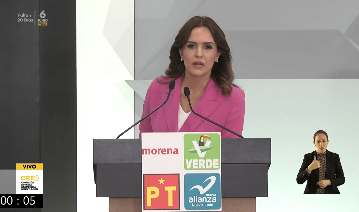 “Llevé a la policía de Escobedo a ser de las 3 policías más confiables del país”, mencionó la abanderada de Morena, Partido del Trabajo, Verde Ecologista y Nueva Alianza, el 16 de mayo de 2021, en el debate realizado por la Comisión Estatal Electoral Nuevo León (CEENL).