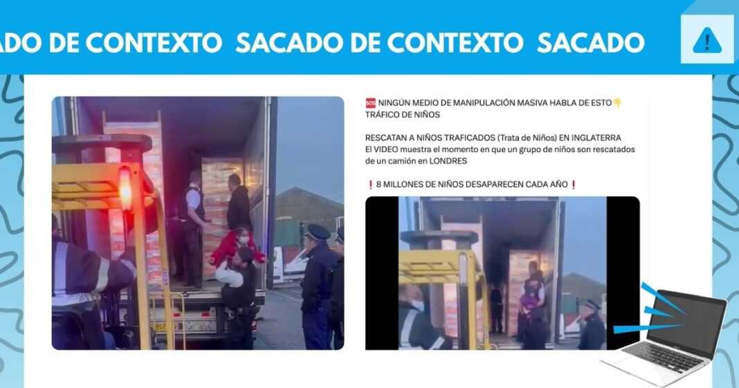 “Ningún medio de manipulación masiva habla de esto. Tráfico de niños. Rescatan a niños traficados (trata de niños) en Inglaterra. El video muestra el momento en que un grupo de niños son rescatados de un camión en Londres”, se lee en la descripción de una publicación en X con más de 6 mil 300 “me gusta” y 47 mil reproducciones desde 11 de febrero de 2026.